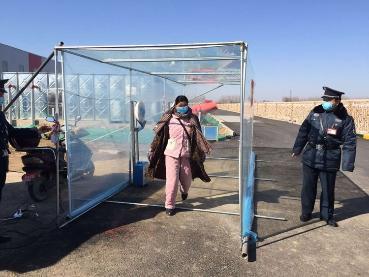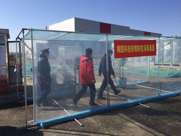 2、翱翔科技有限公司防疫嚴(yán)密,利用公司產(chǎn)品設(shè)立防疫消毒通道,保安員負(fù)責(zé)測(cè)量人員體溫、登記,監(jiān)督人員在防疫通道消毒后進(jìn)入廠區(qū)。