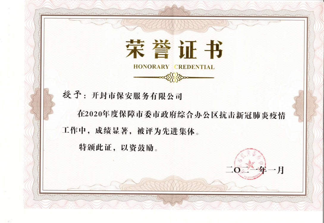 市委市政府綜合辦公區(qū)為我公司頒發(fā)“抗擊新冠肺炎疫情”榮譽證書